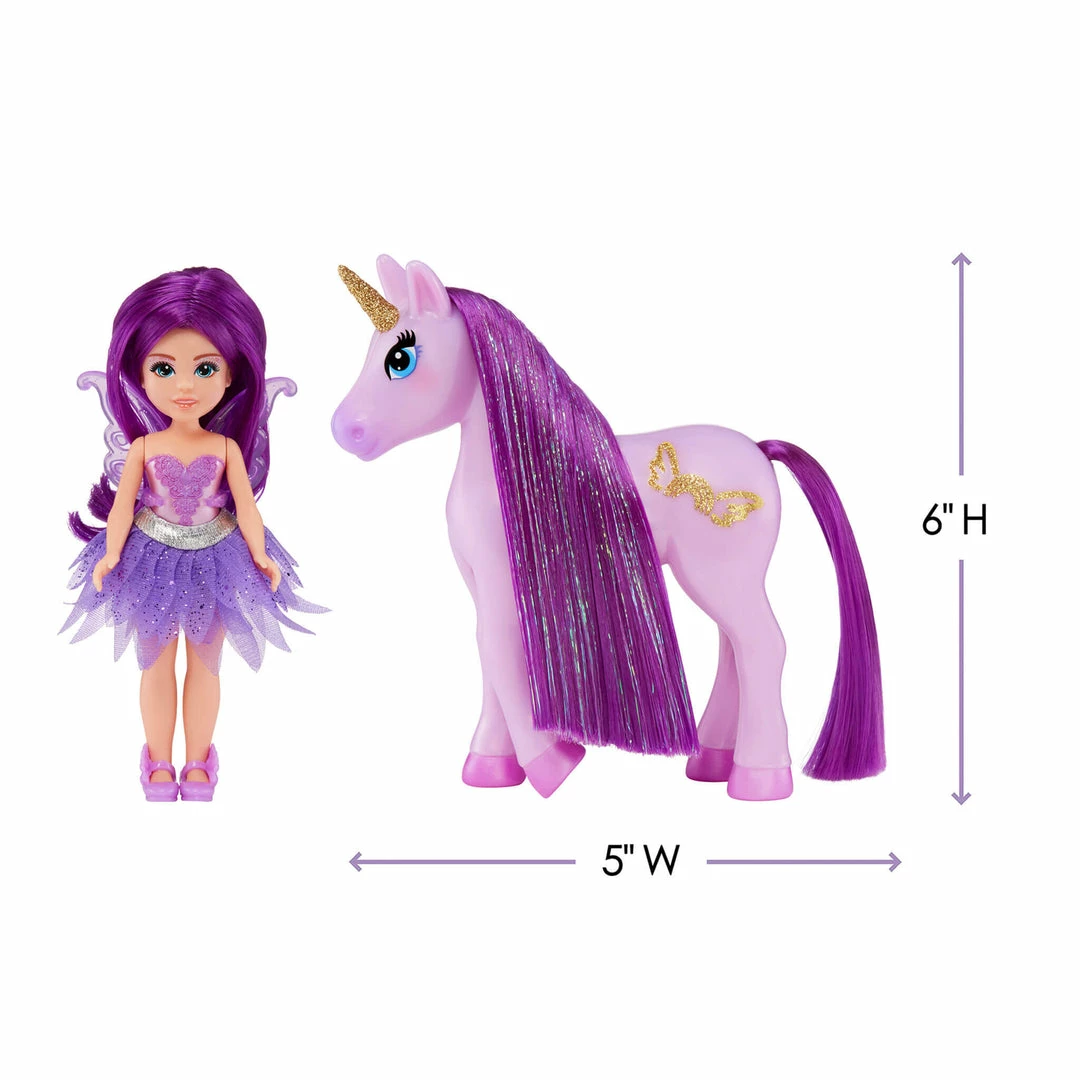 Every MGA’s Dream Bella Color Change Surprise Little Fairy has her own matching colorful MGA’s Dream Bella Little Unicorn. Lavender is Aubrey’s purple unicorn friend and the baby unicorn of Lilac. Doll sold separately.