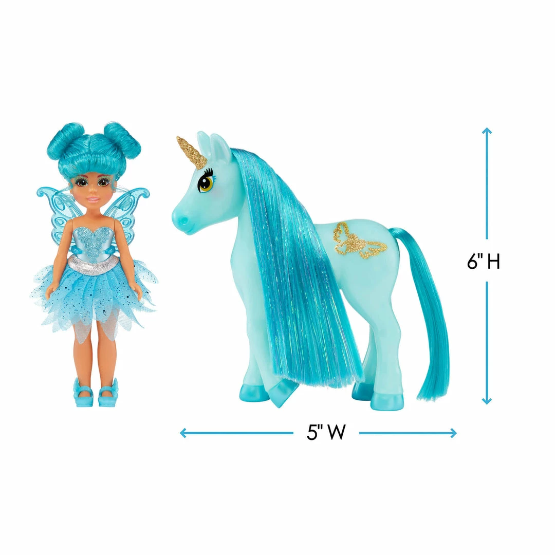 Every MGA’s Dream Bella Color Change Surprise Little Fairy has her own matching colorful MGA’s Dream Bella Little Unicorn. Sea Glass is Dream Bella’s teal unicorn friend and the baby unicorn of Ocean. Doll sold separately.