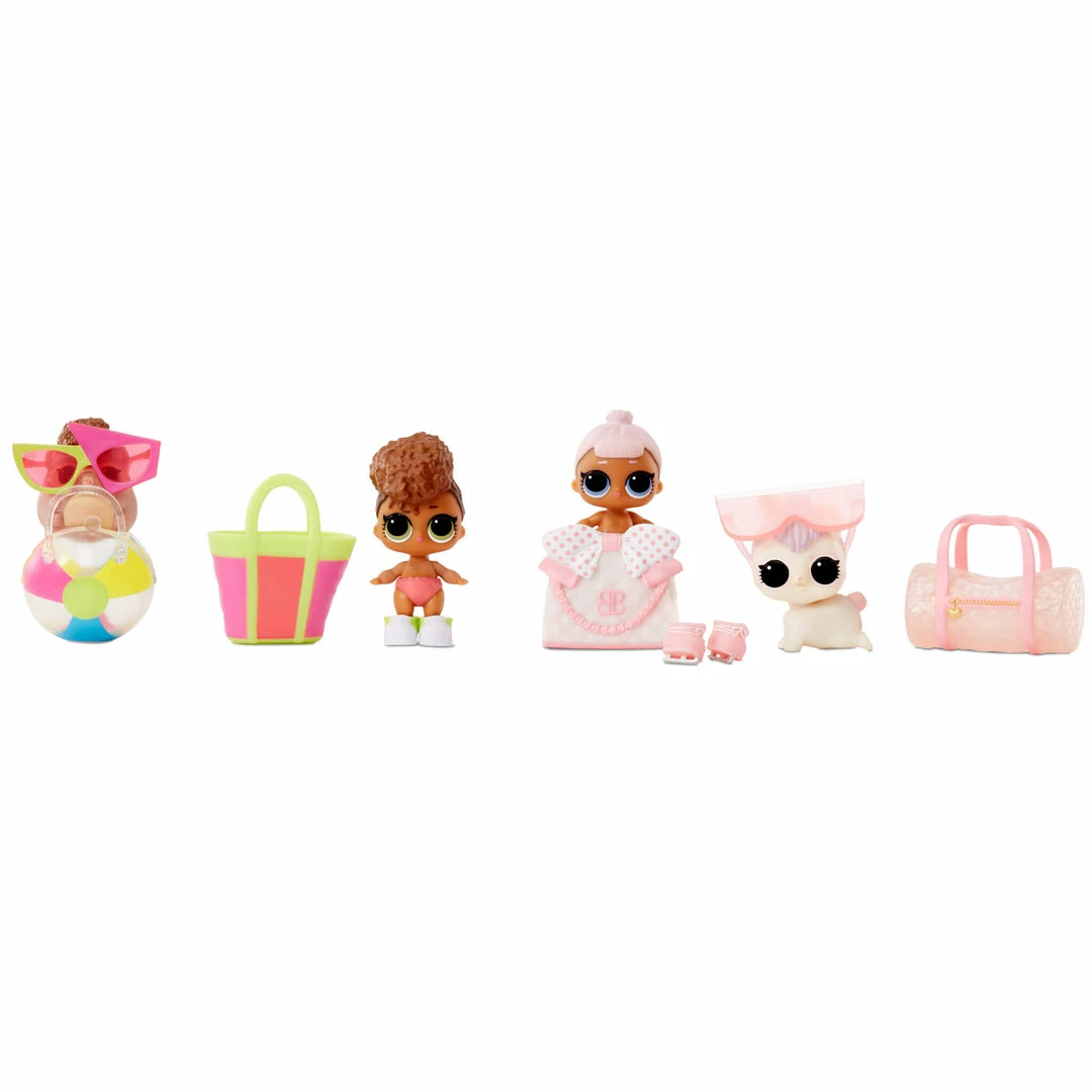 These re-released fan favorite pairs include 10 surprises and a special water surprise when you feed your doll. Each ball comes with 2 LOL Surprise Me & My Lil Sis & Lil Pet Color Change Surprise dolls and multiple accessories.