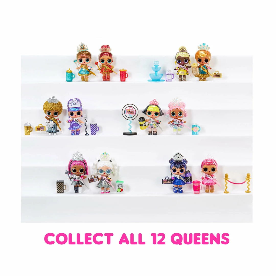 Collect all 12 brand new LOL Surprise Queens dolls and get ready to rule the LOL Surprise World! 5 B.B.s (Selfie Queen, Mystery Queen, Shine On Queen, Double Queen and Study Queen) come with a selfie of them + their besties from the Queens collection!