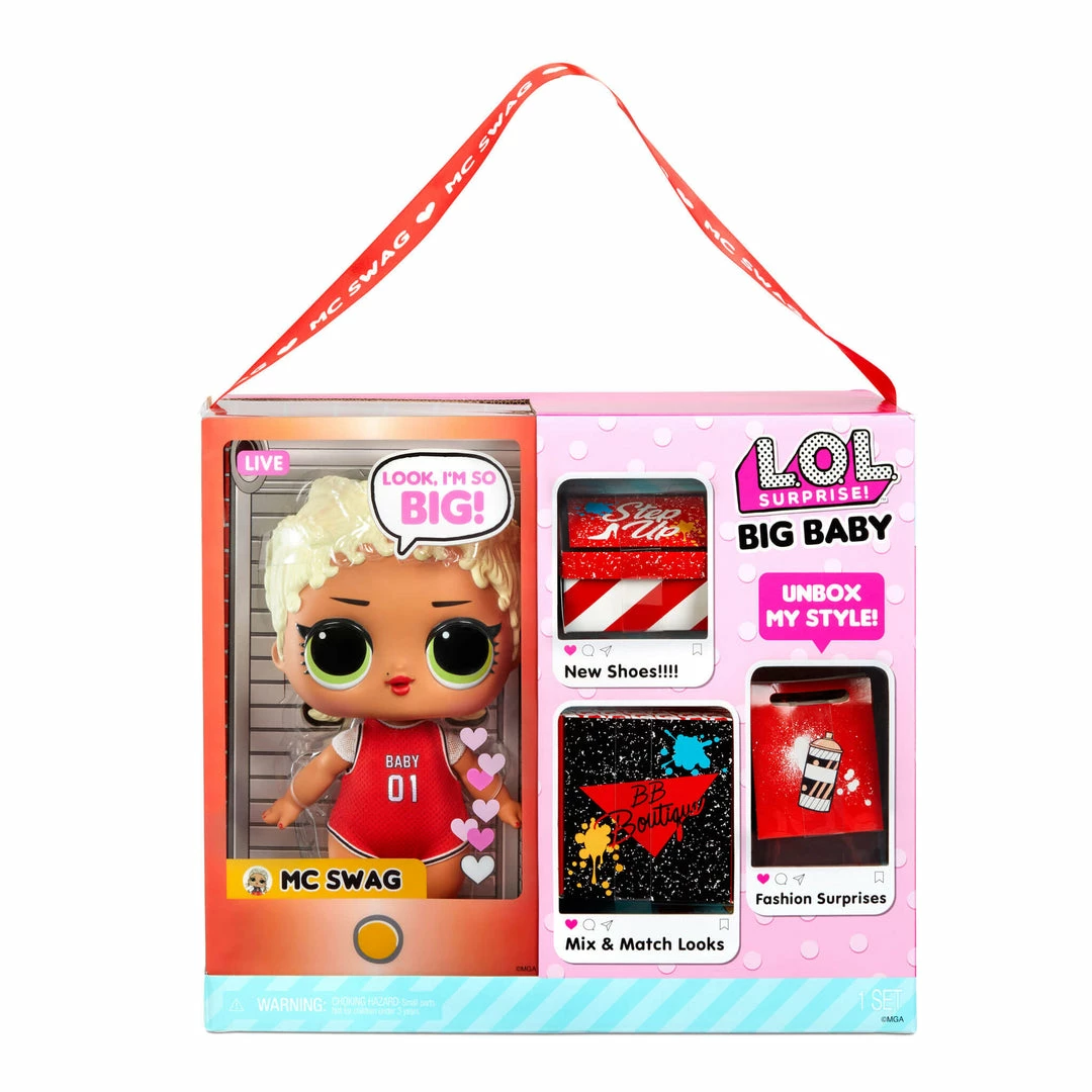 Introducing LOL Surprise Big B.B. (Big Baby), a BIG version of a fan favorite character with real fashions and cute accessories to unbox. MC Swag now comes in a BIG size (11 inches tall), and she’s totally posable.