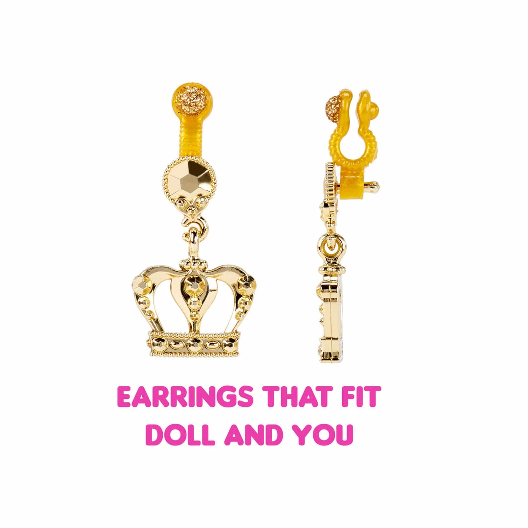 Her package becomes an unboxing station playset. Set up her included table, chair, and backdrop to create the perfect setting to unbox. Then, help Queen Bee unbox all her fashion finds, including a jacket, skirt, shoes, backpack and more from cute packages. She even has sweet earrings that are wear and share. Put them on her, or add the included attachments, so you can wear them, too!