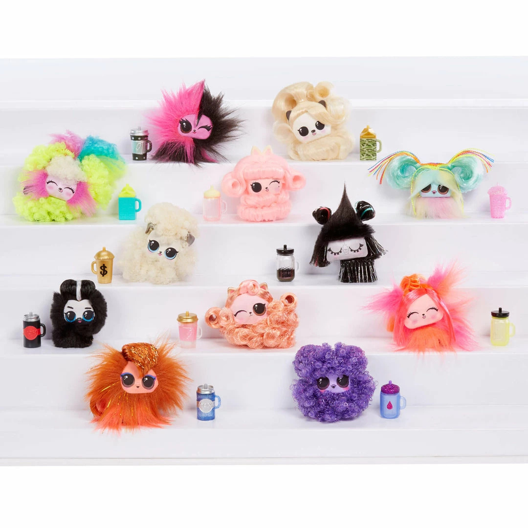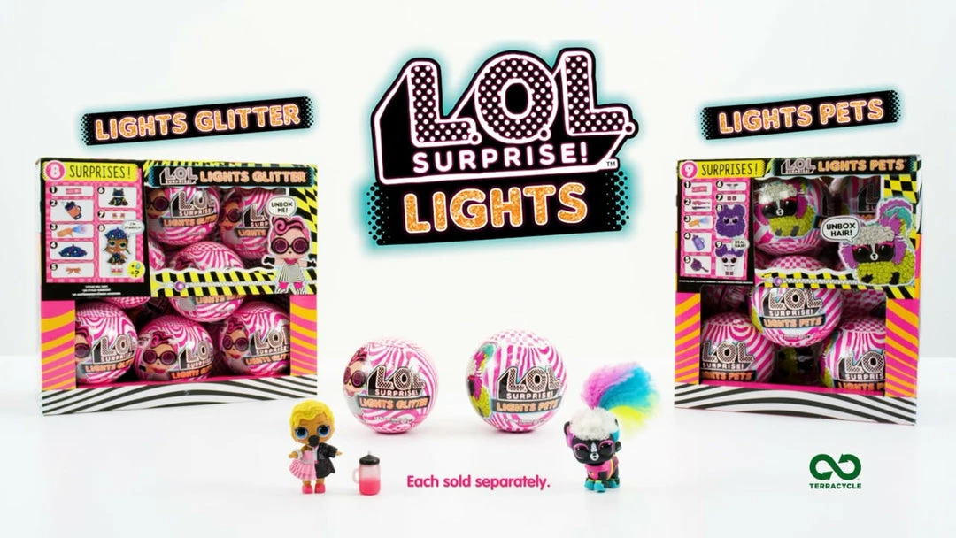 Unbox 9 surprises, including an adorable LOL Surprise Lights Pet covered in extra-long fur. Remove the fur piece by piece to reveal what pet is underneath. But not all the fur will come off because each pet now has a real hair in fierce hairstyles.