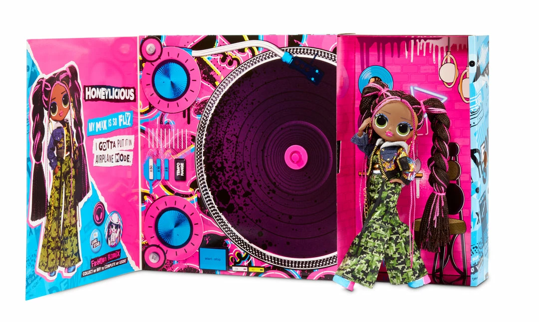 Unbox LOL Surprise OMG Remix fashion doll – Honeylicious – with 25 surprises.
