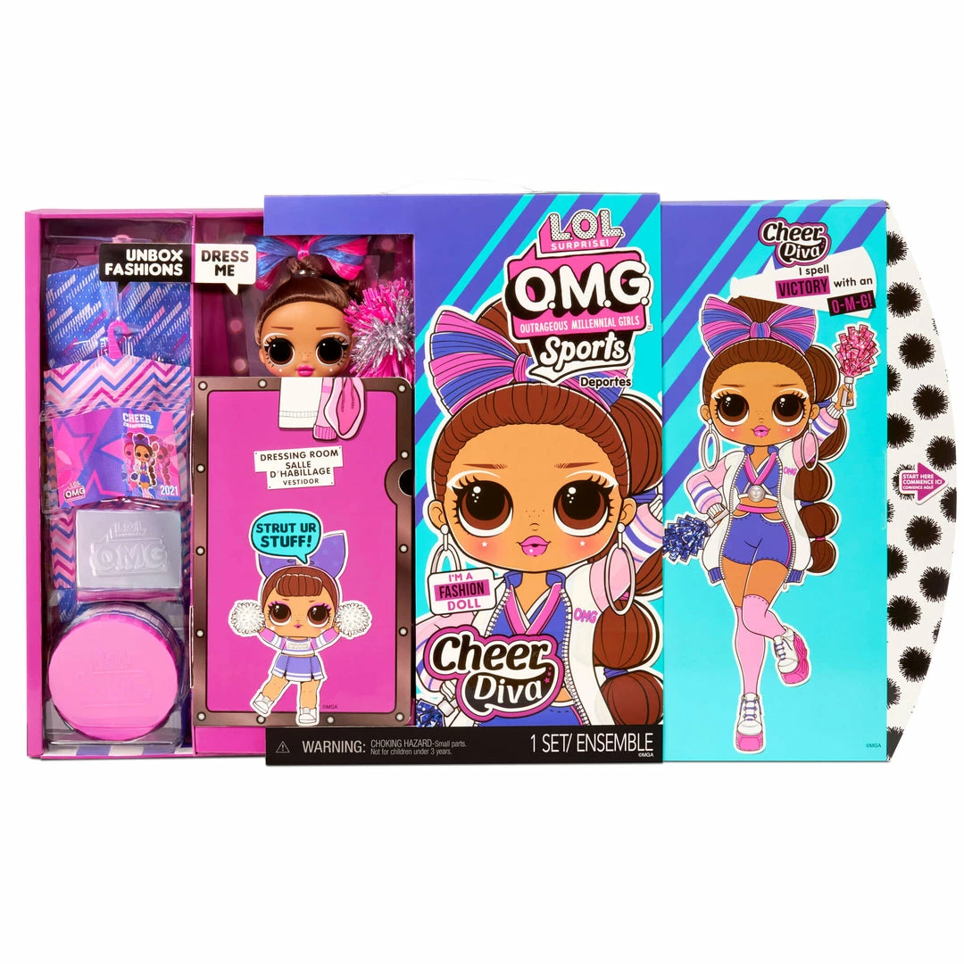 My name is Cheer Diva and I’m a Competitive Cheerleading star! I spell victory with an O-M-G! Cheer Diva comes with 20 surprises and a totally unique unboxing experience! She has stunning features, beautiful hair, her own fabulous Cheerleader style, and she is articulated for tons of poses. Plus, Cheer Diva is the big sister to fan favorite LOL Surprise character, Sis Cheer!