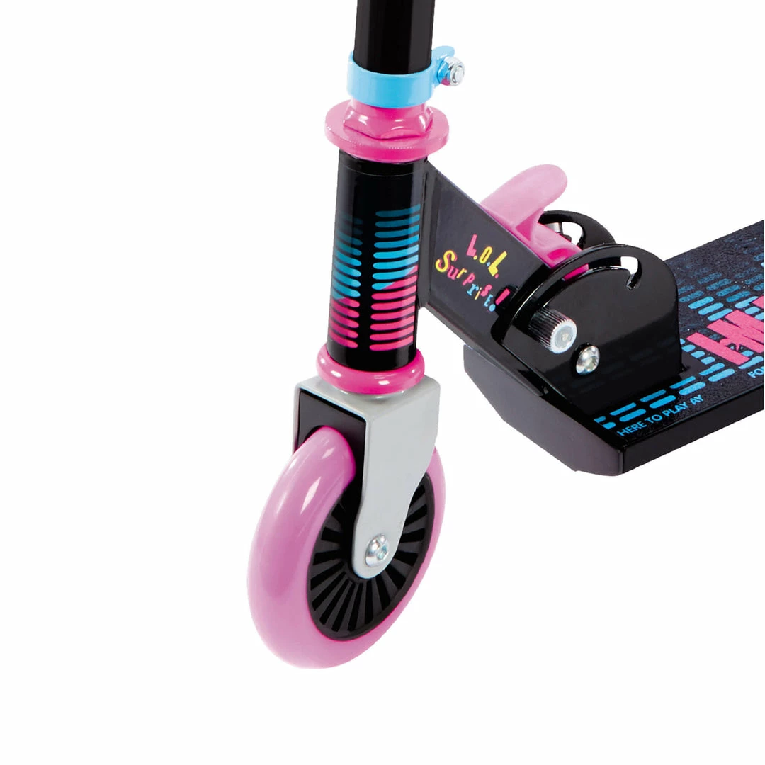 The foam grips and adjustable handlebar make the LOL Surprise Remix Soundtrack Scooter with Speaker ride smoothly just about anywhere. It also features foam grips and an adjustable handlebar for an ultra-smooth ride.