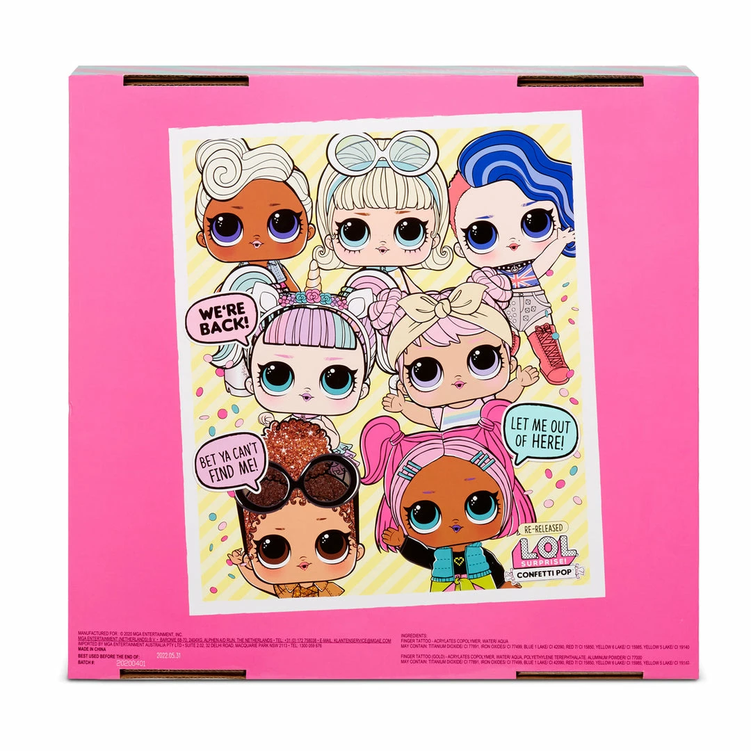 The surprise party unboxing includes a surprise POP of confetti in every ball. Unbox 9 layers of surprise in each ball, including an LOL Surprise doll with a water surprise. Feed or bathe your doll to reveal a water surprise. Will your doll cry, spit, tinkle or color change?